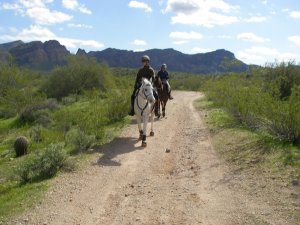 Dad and I rode with Jim and Cindy down at Bulldog Canyon near the Salt River yesterday. We had an absolutely fantastic ride, and if I had to sum it up in one sentence, it would be, “The Go Pony is back!” Whatever was ailing her last fall is done and over with, because she was strong and forward the entire day, easily keeping up with the bigger horses.