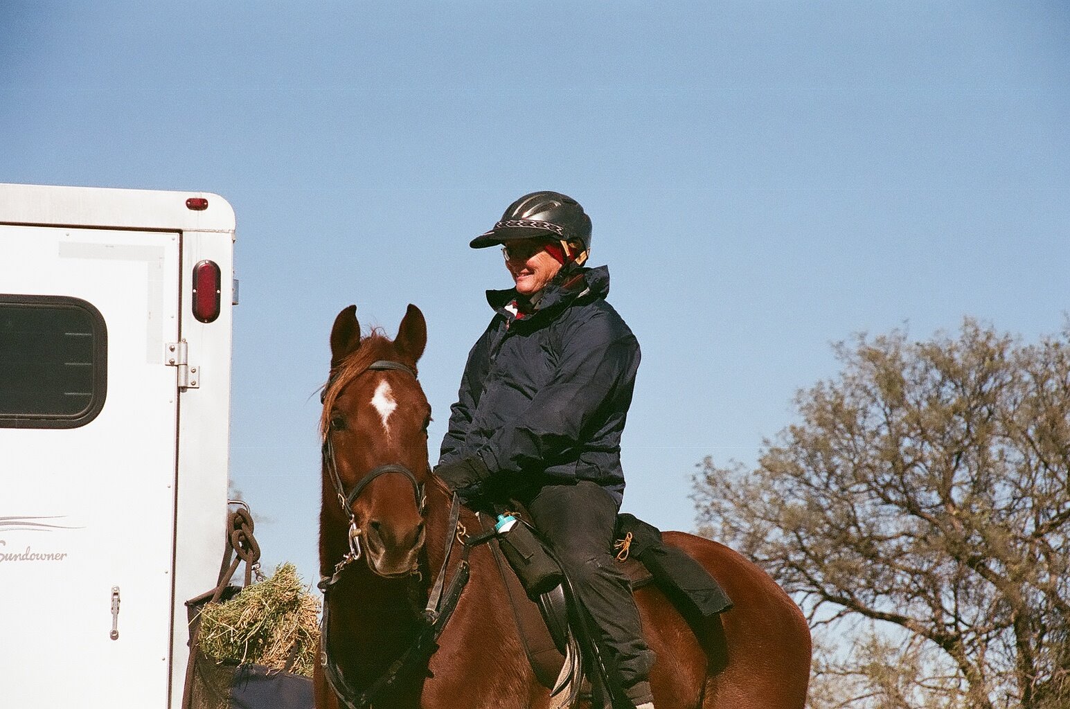 Riding partner for the weekend, Cathy Gemperline and horse Diamond, who Mimi tolerated, since we were moving at at a pace fast enough to deter her from pulling too many ugly mare faces.