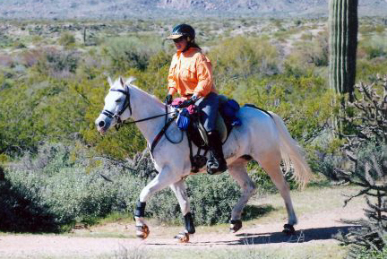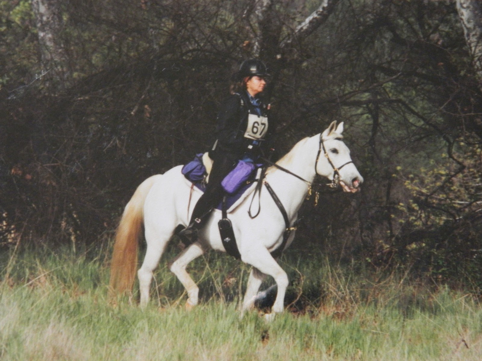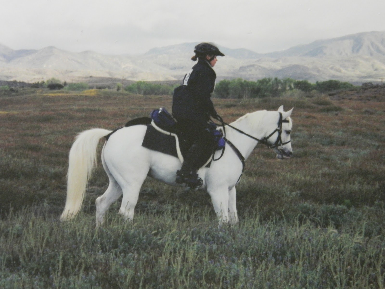 First of Spring NATRC, April 2003, Warner Springs, CA. New saddle! Well, next saddle after the Big Horn. After surviving two NATRC rides without the pony having a meltdown, I felt more comfortable exploring saddle options that didn’t include the pseudo-security blanket of a Western saddle. One of my knees was also occupying the Complaint Department on a regular basis, so I wanted the flexibility of English leathers again. Plus, I started riding English…riding an English saddle and the accompanying equitation is as natural to me as breathing.