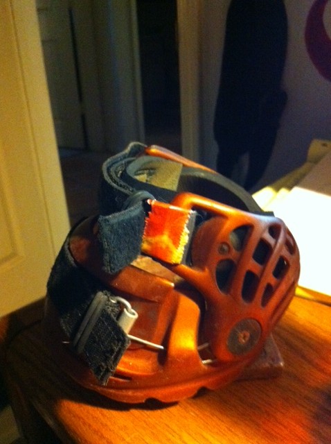 | Unvelcro the pastern strap entirely and wrap the elastic off to the side of the o-rings. Orange would have made more of a statement, but blue was what I had at hand. |