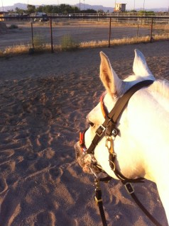 While we just did arena work, she was in very cheerful form, lapping the arena with her perfect 7-8mph endurance horse trot. A couple of times, I tried to slow her down into a Western pleasure jog, and she was having none of it. Nice to know I took my perfectly trained show horse and turned her into a perfectly trained endurance horse.