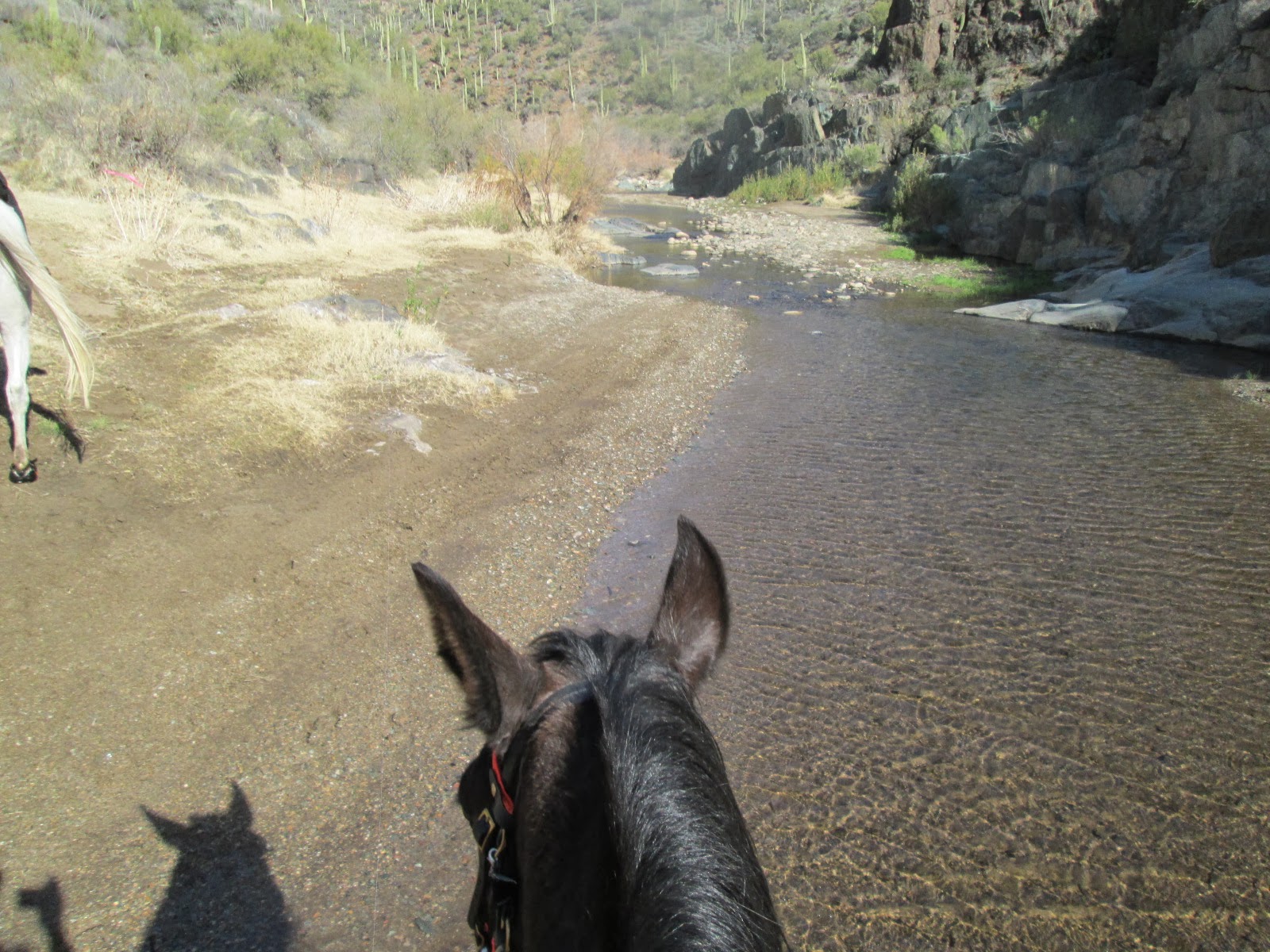 The second loop was only 9 miles, but we had been warned it was slow-going. A lot of the trail followed the Black Canyon River (which is a tiny stream by most definitions), crossing over the river bed and paralleling it for over half of the loop. Which meant we had a ton of water crossings, and sand, and climbs. (Otherwise known as rigorous conditions for hoof boots.)