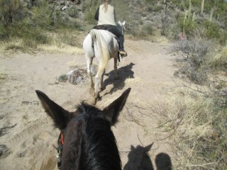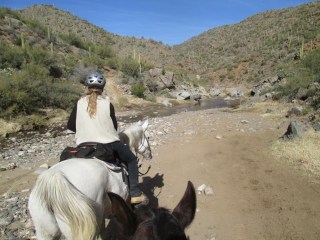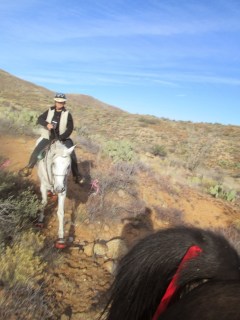 The last bit of loop one took us off the Black Canyon Trail and down into a wash that lead back to camp. The wash actually had a flowing little stream-lette going through it, and ride photographer Susan Kordish was there to take what I’m sure will be awesome ride photos.