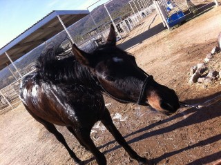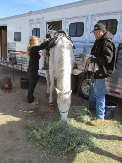 We were even able to give the mares a bath afterwards, then put them in their corrals to roll, dry off, and eat some more while we went back to the trailer for food and to do some Renegade customer service.