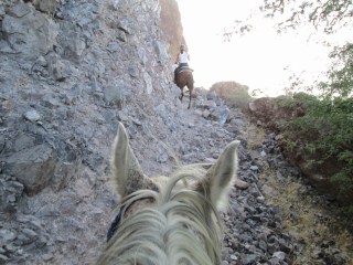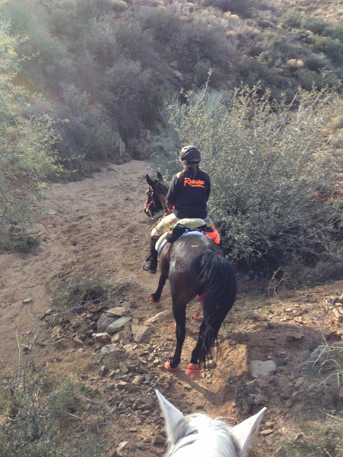 10. Thanks! Overall, it's been a great experience. It helps that all the horses I've ridden have been part of a fairly close-knit circle of people I know, so I at least had a vague inkling of what I was getting into…didn't climb aboard any I knew to have major behavioral issues or would be likely to dump me in the middle of a cactus. It's still a bit unnerving, though…and I never, ever thought I would be *that* rider who climbs aboard a strange horse the morning of a ride.