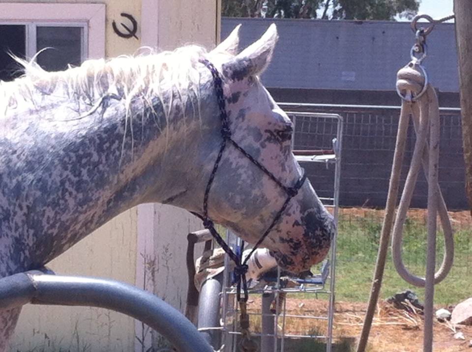 Spotty pony! Her spots have gotten crazy — and you only see it when she’s wet, when her dark skin shows up through the wet hair. Sometimes you can kind of see it this time of year when she’s in her summer-bald coat. But she’s got a crazy Appaloosa blanket color pattern…had she not greyed out, she would have been a flaxen chestnut with the frosted blanket.But as striking as that would have been, I absolutely prefer her as a grey. It suits her. And makes her look even more like the little Arab she tries to be.