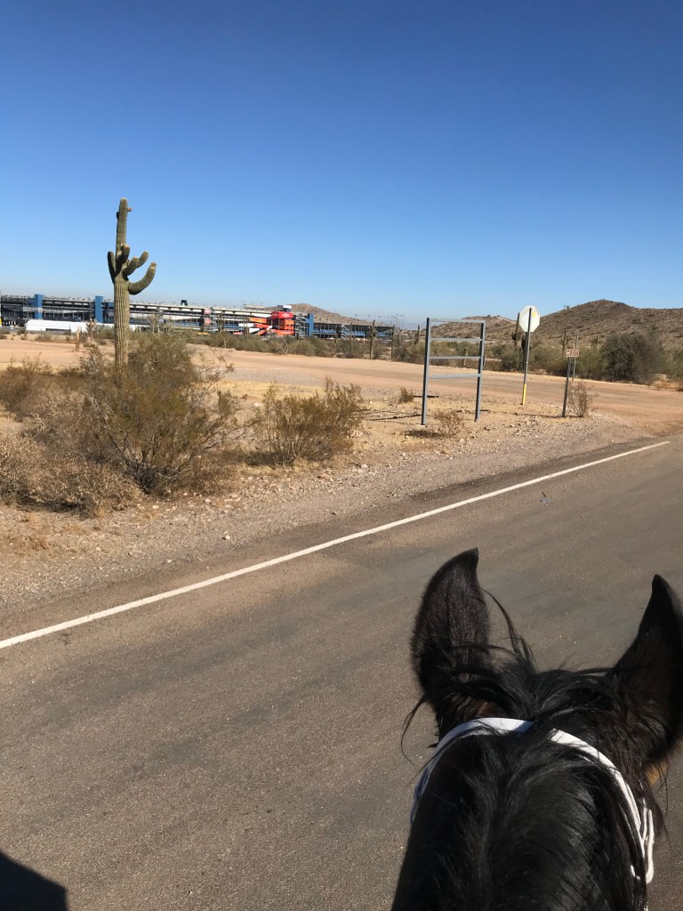 This was also the first time I’d taken her out by herself since I brought her home. Theoretically I knew she could do it — Gina had ridden her frequently by herself, and we did a good part of the Wickenburg ride by ourselves — but I hadn’t let myself be brave enough to try it until at the ride. And she blew me away. She was brave, curious, confident, settled, and I myself was totally comfortable and felt completely safe. I felt like we had been riding together for years, rather than a few months and a handful of prior moments. And the fact she can sit for a week and half and still be totally sane and not a fire-breathing dragon speaks volumes for her good brain.