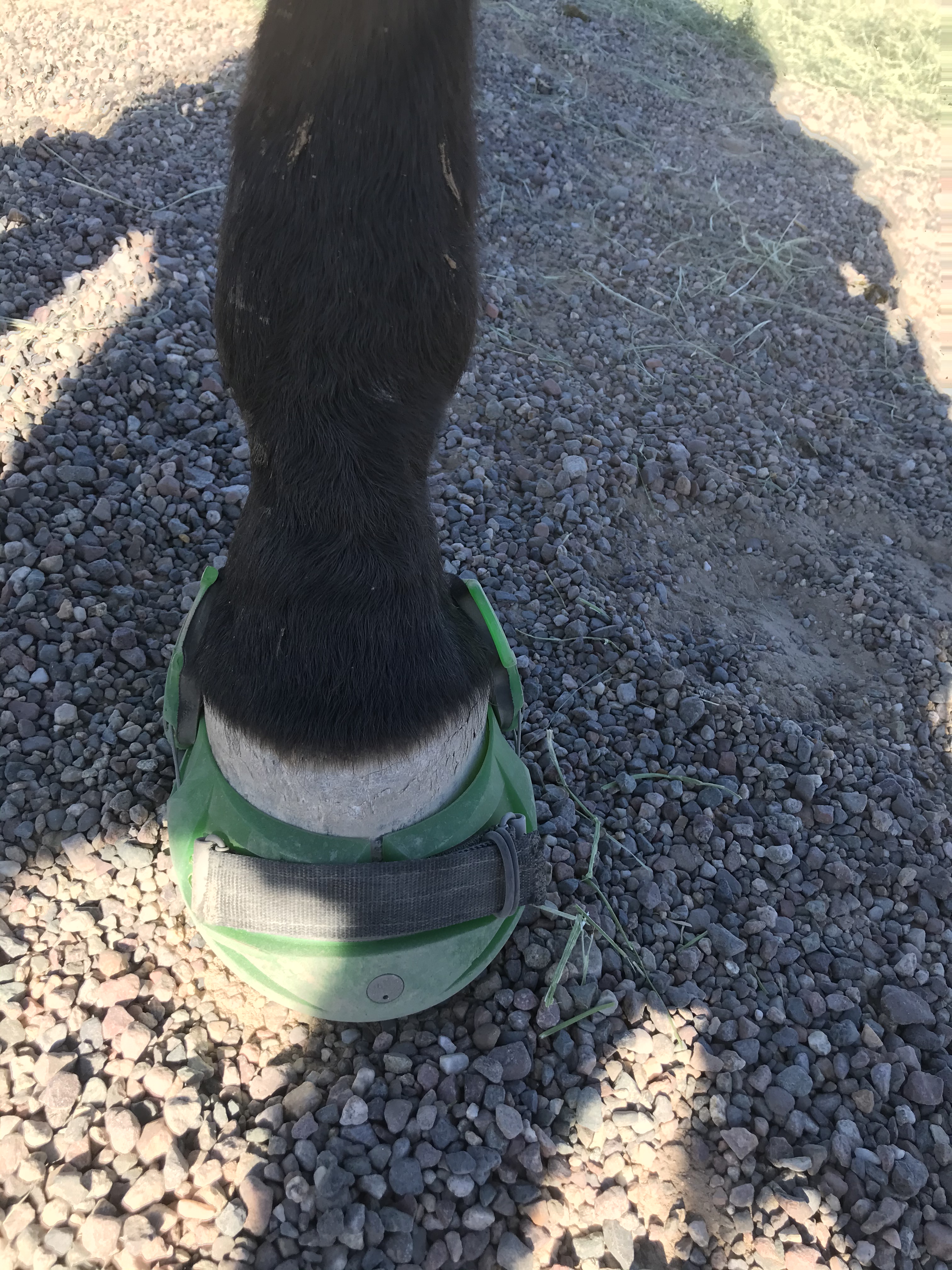 Proof that, especially in dry conditions, on a well-fitted boot, the pastern strap is very much secondary, and almost unnecessary. This stayed on for what I figured was at least 4 miles of trotting and cantering and a ton of picking through rocks.