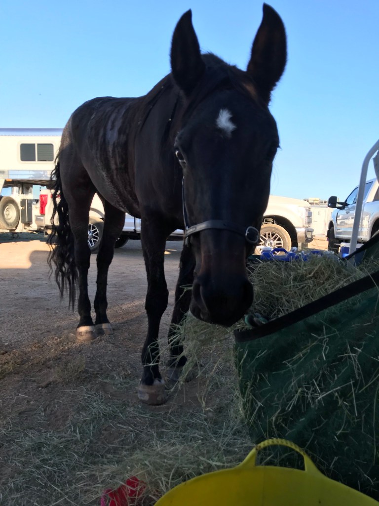 Lancette had a parking spot saved for me, and had kindly offered her extra portable corral for Liberty so that the two mares could hang out near each other. In the past I’ve had a Hi-Tie, or in more recent times, have just hard-tied Libby to the trailer, but after this weekend, I ended up being a fan of the corral option as well. Libby’s good in any containment set-up, really, so it’s nice to have flexibility and options.