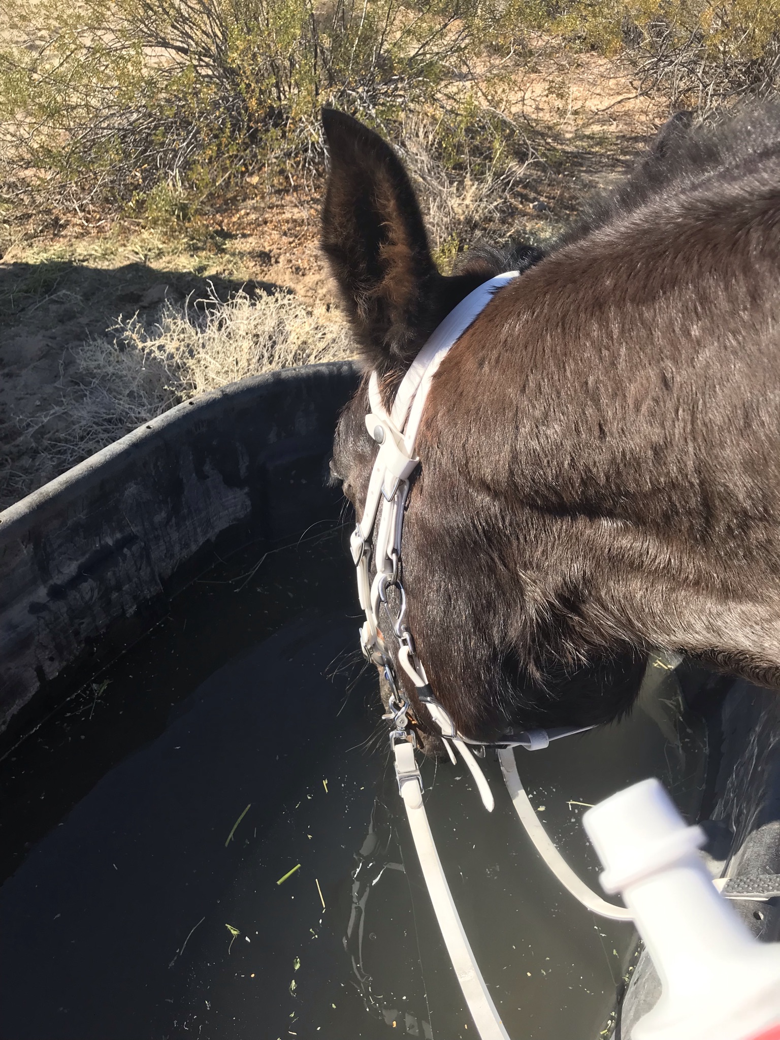 At the next checkpoint, 16 miles in, both mares drank really well, and we paused for a few minutes here to let them eat. With the first loop being 30 miles before we were back to camp, with no forced holds along the way, it was on us as riders to make sure we took the time on our own to let the horses have some small breaks, and the chance to eat along the way. It was also nice to enjoy a few minutes in a more sheltered spot out of the wind!