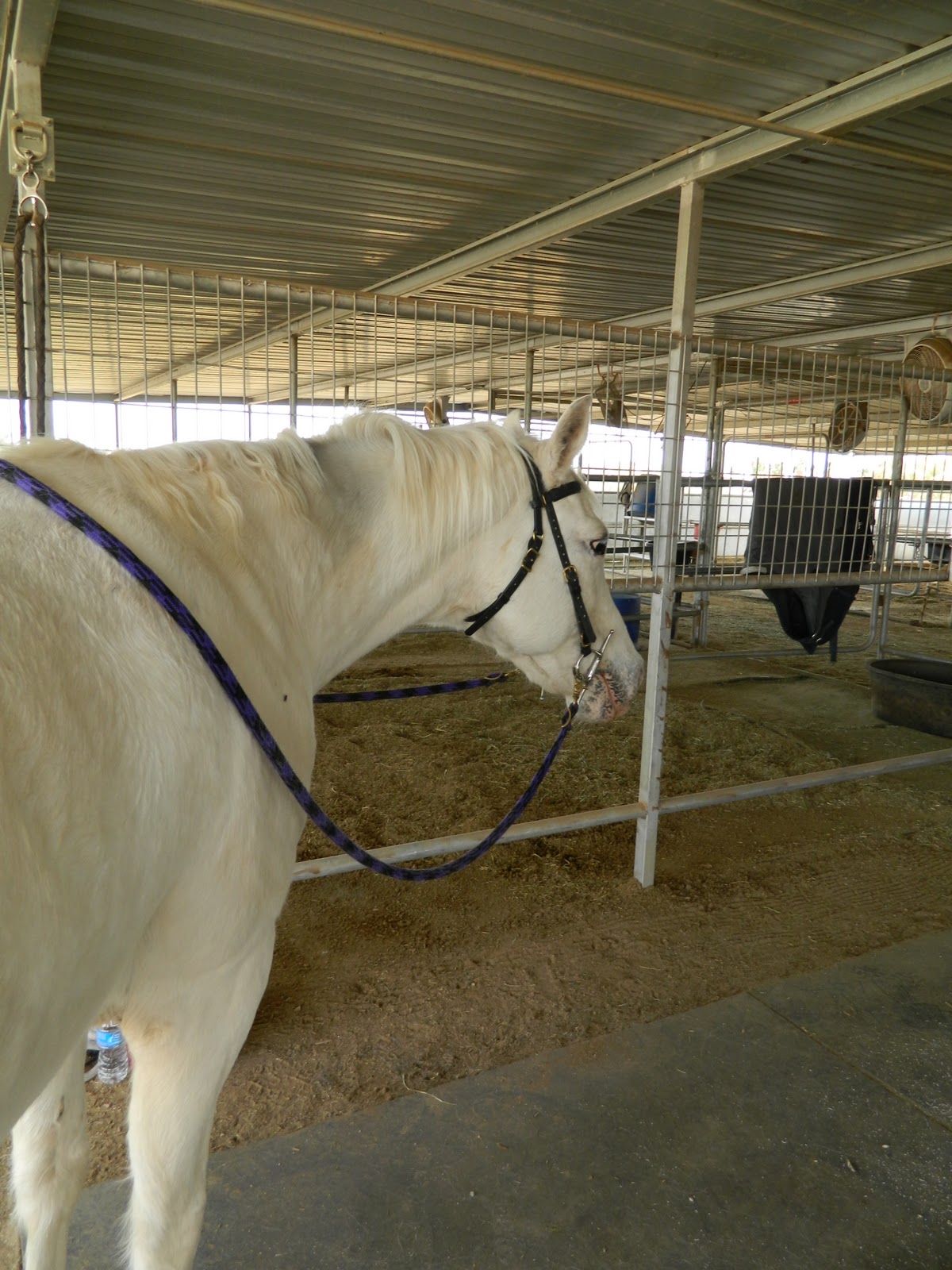 It sort of looks like a jumble of purple spaghetti, but that’s Mimi’s trail bridle. Zilco Deluxe Endurance Halter/Bridle with the Wind Rider Aluminum S-Hack and Hought Beta-Biothane Noseband.