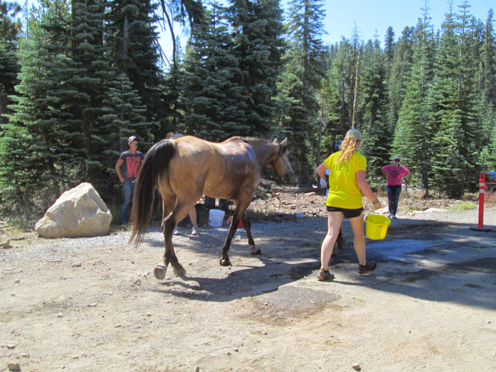 I love watching riders come in to Robinson. Normally endurance isn’t what one would consider a “spectator sport” but for those who are endurance riders, being at the Tevis vet checks can be some pretty good spectating. It’s organized chaos – and the degree of organization varies, depending on the number of crew people, experience level, advanced planning, etc.