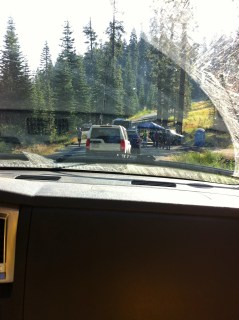We got what I suspect was a pretty big jump in traffic, and everyone was quite polite and reasonable this year. Last year, water bars had been recently installed on the forest road in to Robie, and it slowed down traffic big-time, and rigs had to basically crawl over them. This year, they were better bedded-in and much smoother to drive over. The conga line of trailers flowed really well, and it took us about half an hour to reach pavement.