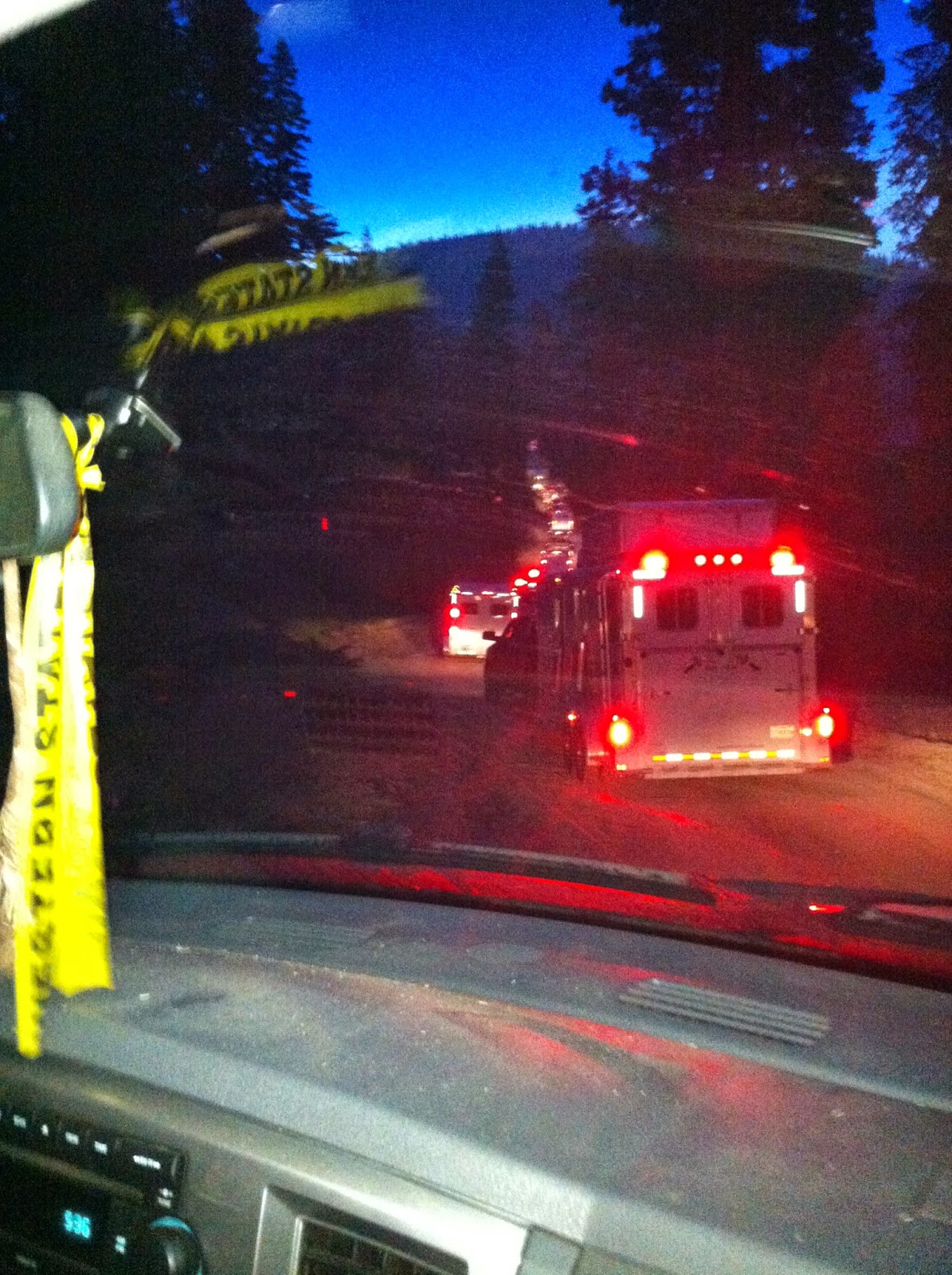 Once we hit pavement, it was smooth sailing all the way to the Foresthill exit. We grabbed food and McDonald’s to go, jumped back in the truck, and headed straight to Foresthill. All of the crew gear had been packed in Kaity’s truck ahead of time, so we never even had to stop in Foresthill. Patrick would take the rig to Foresthill, park it, then head home on his motorbike (parked in the trailer) to check on the dogs before heading back to Foresthill later in the afternoon.