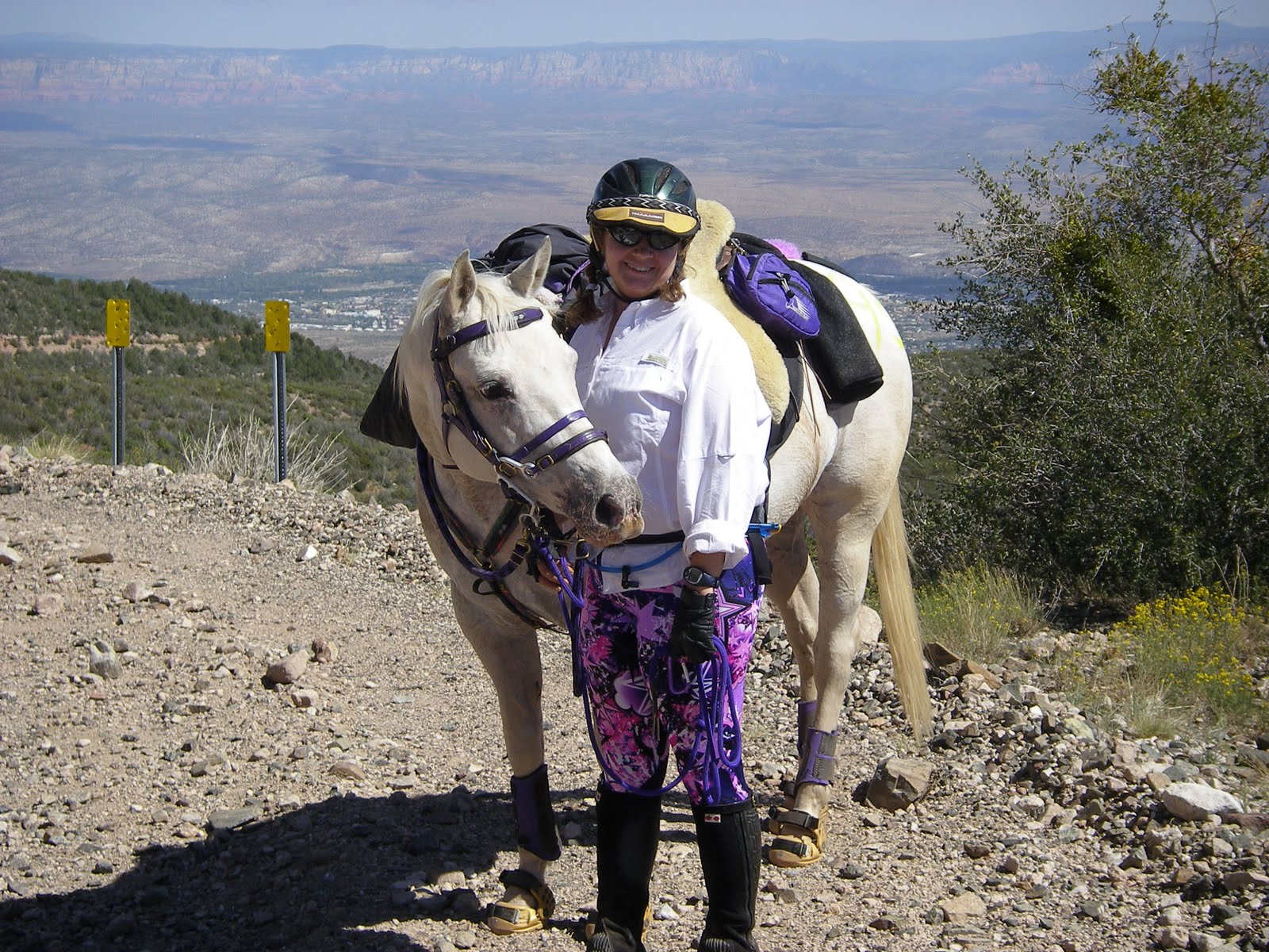 The approach into vet check 1, Mingus Springs Camp at mile 16, is about perfect. A downhill onto a two-track road, with lots of space to jump off and lead in.