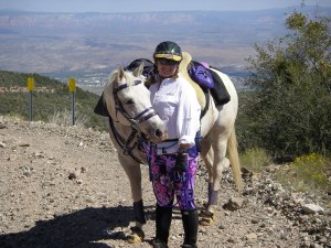 This is kind of fun, because I have virtually no photos of me vetting in at endurance rides. My showmanship and halter upbringing is showing through. (photo: Sue Kordish, Cowgirl Photography)