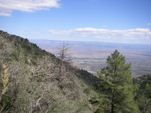 out of the canyon and up into the manzanita. view is looking towards Prescott and the Bradshaw Mountains in the distance.