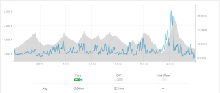 The climb between aid stations 2 and 3, miles 15-19, was awful, with 17-19 being especially brutal. It was the kind of sustained, steep climbs that kept on going, where your heart rate keeps going up, and you can never get your breath, and you just plod forward one step at a time.
