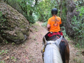 At the bottom, we were rewarded with finding a little creek, and there was enough space for us to lead the horses in one and a time and let them drink and eat some lovely green grass.
