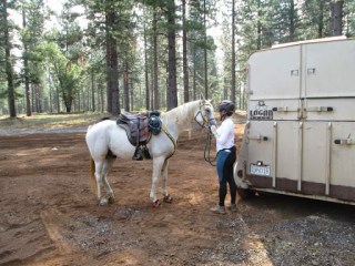 Saddle pads were washed, tack and gear was sorted, dog blankets and beds were packed, a new air mattress procured, and a cartful of food from Trader Joe’s purchased. Camping box sorted through and restocked, bedding packed, and dogs washed after Sofie tried to roll in something dead. (A futile gesture, though, since she spent as much time as she could wallowing in the dirt at the campsite. Farm dog.)