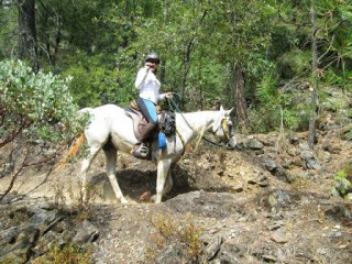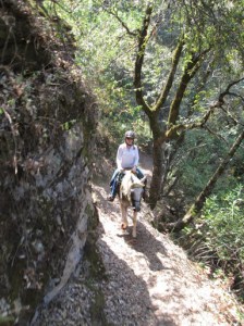 Discretion being the better part of valor (it’s bad form to die on the first day of your riding vacation), as well as the fact we were on a single track trail with drop offs, I jumped off and lead her in hand past the llama. Fortunately, we were at a spot where they had a clear area they could step aside.