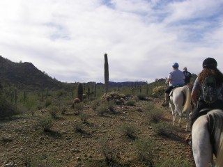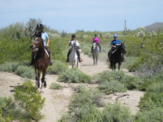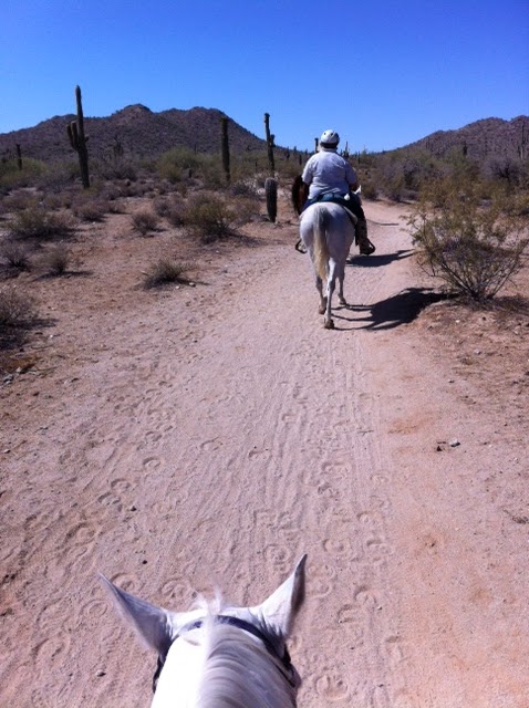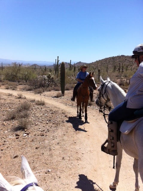 Trail buddies for the day: Kenda & Spirit (chestnut); Chris (Barn Owner) & Tuudy (grey) |