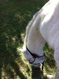 The upper level bit is also making her extremely conscious of what I’m doing with my hands, and it’s forcing me to ride lighter, to rely on seat and legs first, then the bit. Maybe there’s a correlation between my lightness and her lightness?