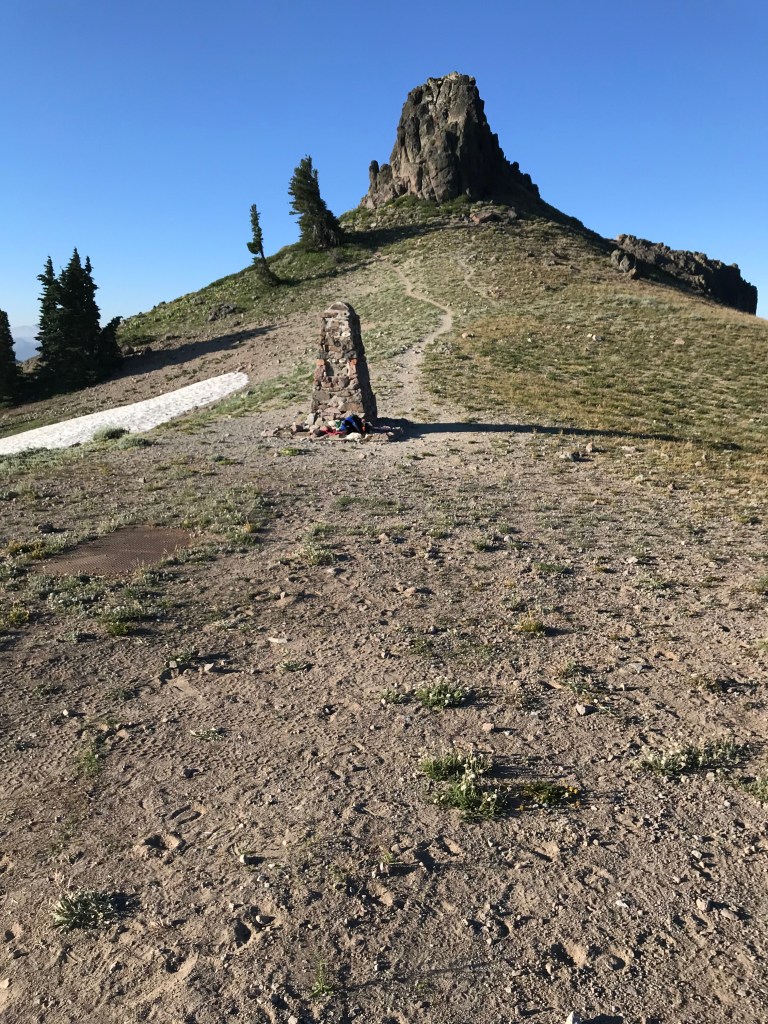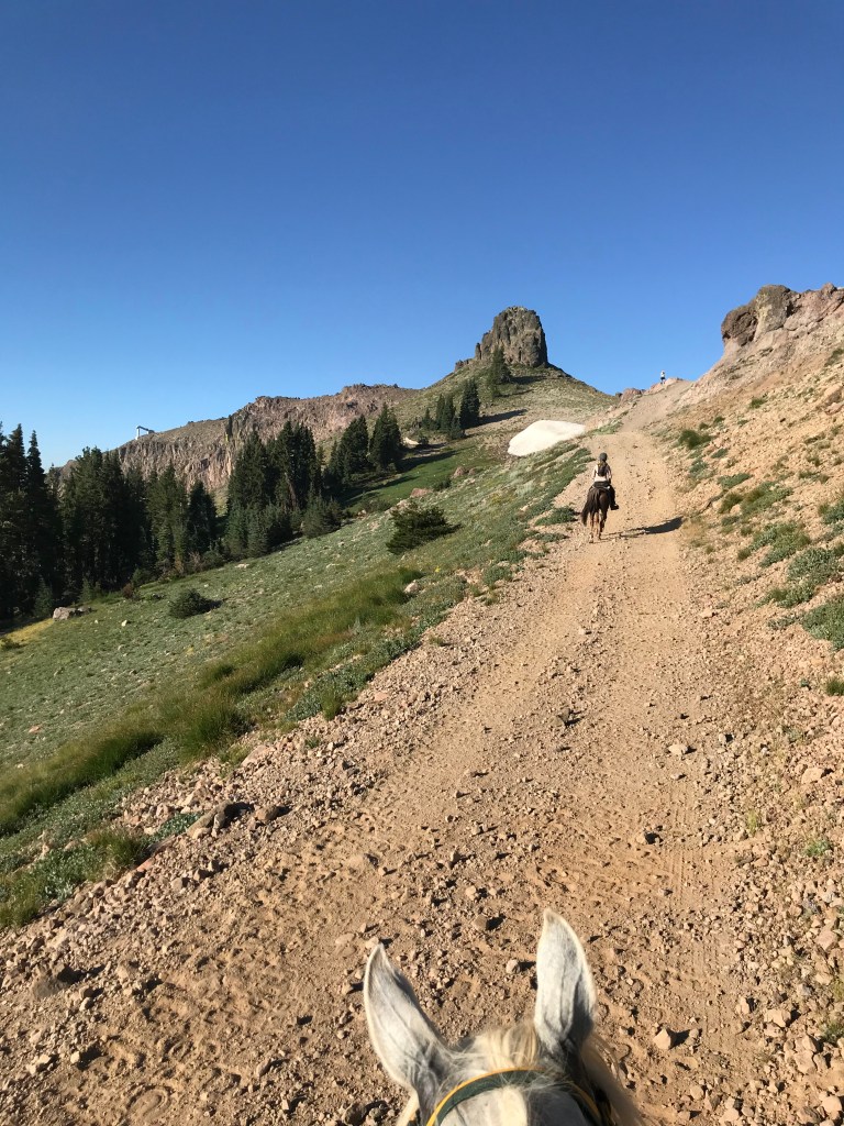 On the actual ride, reaching High Camp was the first real chance I had for a break — quick work of jumping off, tossing Roo’s reins to a volunteer while he drank, and ducking off out of the way to water some non-existent bushes (squat in the weeds/grass, no one cares…), then electrolyting, hopping back on, meeting up with some friends, and starting the last bit of climbing up to Watson’s Monument.