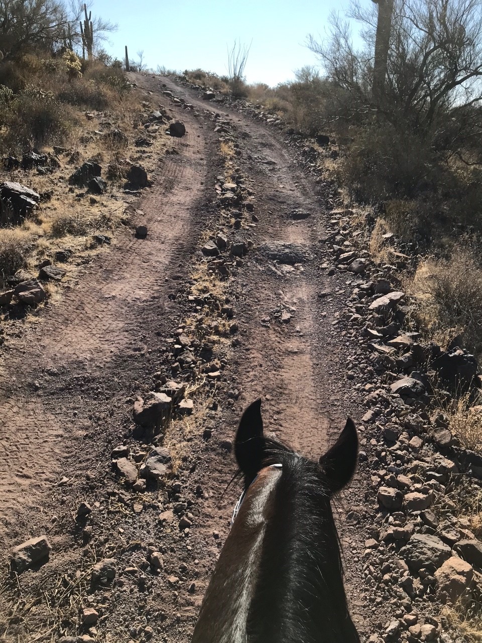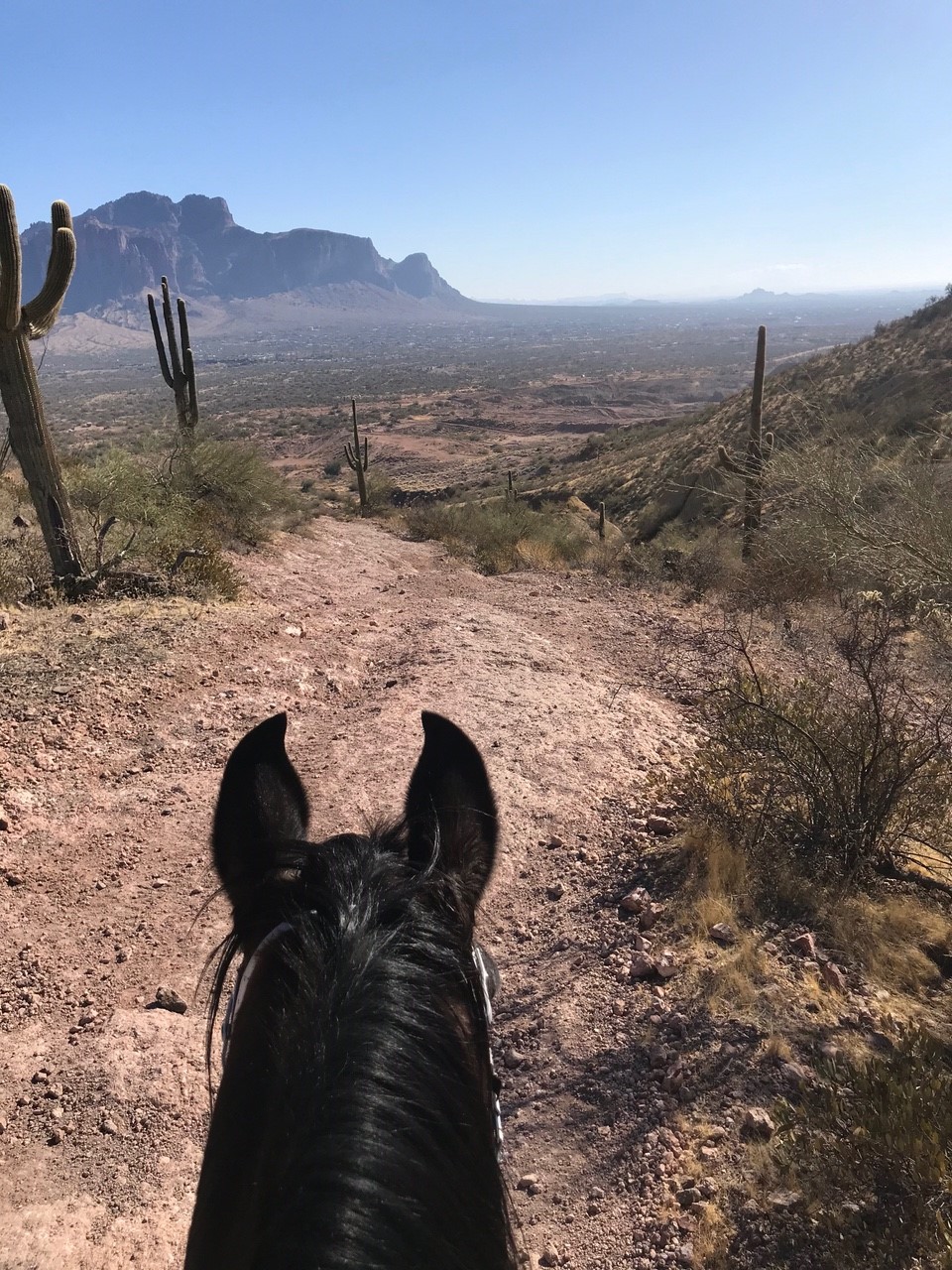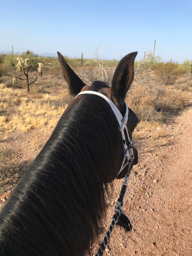 She was definitely the best part of 2020, and she is everything I need in a horse right now. She challenges me — not in a “problem horse who needs fixing” type of way, but the positive, “I want to better myself as a horsewoman to be able to best communicate with her” kind of way. She’s bold and she’s solid, but she’s also very connected to her rider, and the more confident I am and the more I trust her, the more she shines. She’s bailed my anxious, nervous butt out on previous occasions, in terms of not taking advantage of me or melting down herself, but she really, really wants her rider to be her partner, and when I am focused and “forward thinking” myself, she gives her 100%. (It’s happened enough times now that I’ve picked up on a pattern — if I’m not engaged, or just “along for the ride,” that’s when she will start peeking at things or tossing in little shies at rocks, dead cactus, etc…her way of saying, “hey, up there, we’re in this together, be with me.” But I connect with her and can communicate with her in a way I don’t think I’ve experienced with another horse before.