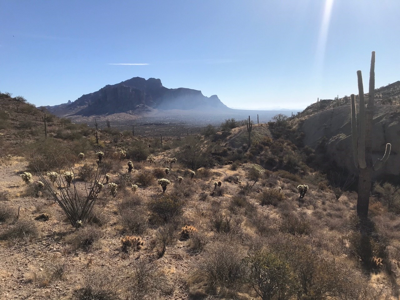 One of the interesting aspect of winter in Phoenix — the inversion layer. Cold enough at night and warm enough in the day, and surrounded by mountains, it ends up trapping a lot of particulate matter down in the valley. We were high enough at the particular point to see exactly where the inversion layer starts. This is both fascination, from a visual aspect, and disgusting, because “Gee, I wonder why I have allergies?”
