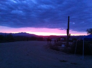 …is helping out at one. Or in this case, after one. Dad and I trailed the ponies up to McDowell Mountain Park yesterday to help de-ribbon the trail from the latest Valley of the Sun ride, which had been held Saturday.